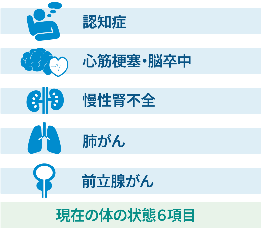 ・疾患予測は、将来の発症リスクを評価するものであり、現在の疾病の罹患状況を判定するものではありません。